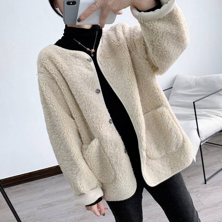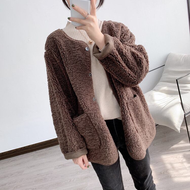 送料無料 ウールボア 風 カーディガン レディース コート 防寒 暖かい 厚手 カーディガン フリーサイズ ベージュ ブラウン 新作