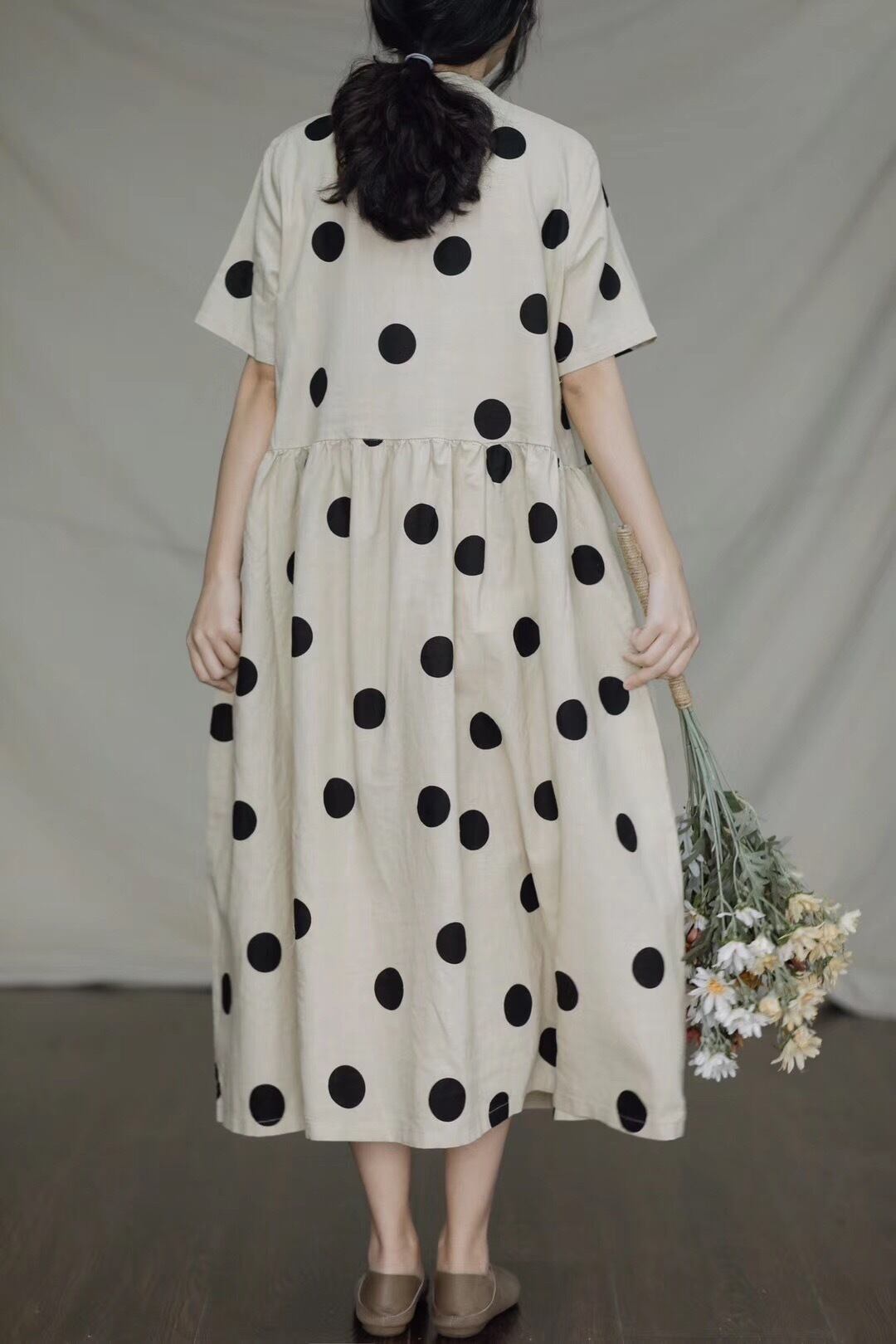 送料無料 マキシワンピース ロングワンピース 夏 麻 リネン 大きいサイズ マキシ丈 ロング丈 リネンワンピース ワンピース チュニック マキシ ロング チュニックワンピース 涼しい 半袖 レディース 麻 リネン ナチュラル 体型カバー 着痩せ ドット柄 水玉 フリー