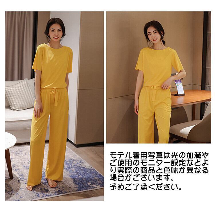 送料無料 ルームウエア セットアップ ロング 接触冷感 レディース 半袖 上下セット 部屋着 パジャマ ナイトウエア リブ 涼しい ロング ロング丈 トップス ボトムス フリー ブラック グレー ピンク ベージュ ブルー グリーン イエロー