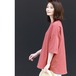 空気をはらんだ立体感、華奢見せ拘りデティール。 空気を含んで軽くてさらりとした着心地が春夏にぴったりです! ナチュラルな風合いでカジュアルコーデを引き立ててくれます。 素材 :綿100% カラー:ブラック サックス ライトモカ ライトレッド ピスタチオ サイズ :cm 【M】:着丈66(前)/72(後) 肩幅61 バスト125 袖丈24 袖口幅18 脇口幅19 裾幅56 【L】:着丈67(前)/73(後) 肩幅63 バスト129 袖丈24 袖口幅19 脇口幅20 裾幅58 ※サイズ表記は目安です。誤差はご了承ください。 ※生産の関係により写真と色、柄が若干異なる場合があります。 【 在庫について】 当店では複数店舗で在庫を共有するシステムとなっております。そのため、ご注文後に商品が品切れとなっている場合がございます。 ご注文後に商品が品切れとなってしまった際には、メールもしくは電話にてご連絡いたします。 【商品の色味について】 ●商品写真はできる限り実物の色に近づけるよう加工しておりますが、お客様が使用するパソコンのモニター設定や部屋の照明により多少、色の変化が感じられる場合がございます。 【生産について】 ●機械による生産の為、生地の継ぎ目の若干のズレやほつれなど、形やサイズに多少の誤差が生じる場合がございます。 ●同じ商品でも“生産時期”や“カラー“により形やサイズに多少の“誤差“が生じる場合もございます。 詳しくは商品画像や実寸サイズにてご確認くださいませ。 ●プリント生地の商品については、生地の裁断・縫製方法により写真と同様の柄が出ない場合がございます。 【サイズについて】 ●表記しているサイズは平置きで採寸ですので若干の誤差が生じる場合がございます 【商品について】 ●表記している商品以外のものはセットではございません。 ●濃色品は多少色落ちすることがあります,ご注意ください。 ※予め十分ご確認の上、ご注文頂きますようお願い申し上げます。