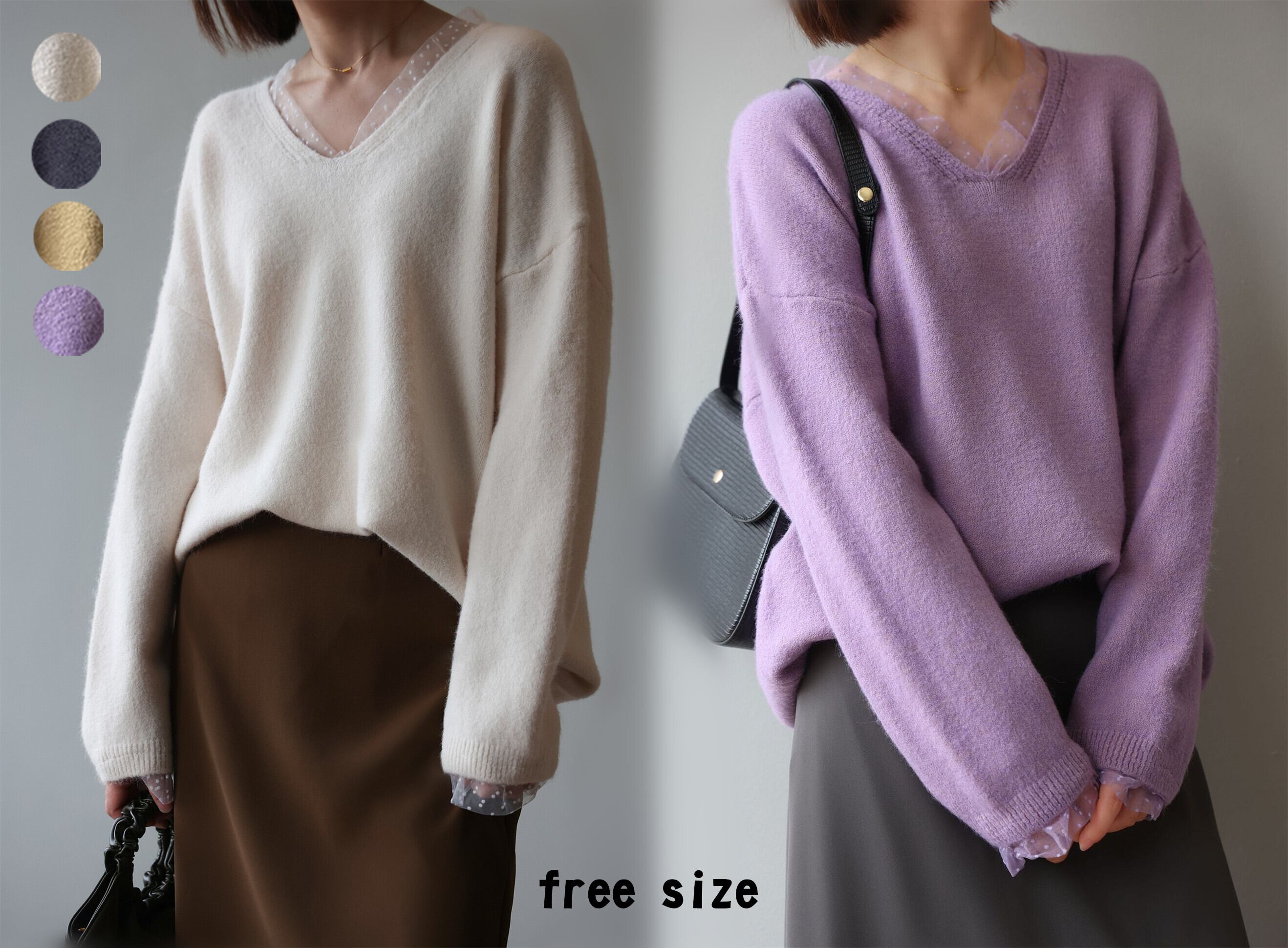 送料無料 首元レース カラーニット レース カラーニット セーター シンプル レディース やわらか ナチュラル 冬 秋 服 ファッション コンサバ 大人女子 きれいめ ガーリッシュ フェミニン ベーシック フリー ブラック パープル カーキ オフホワイト