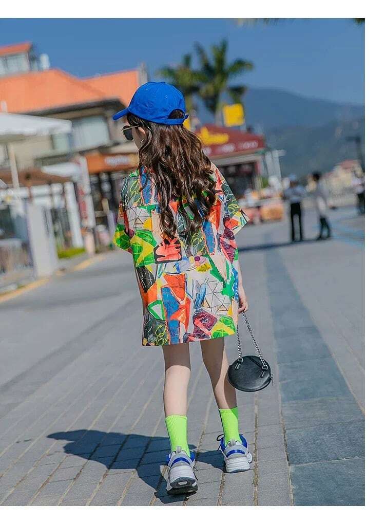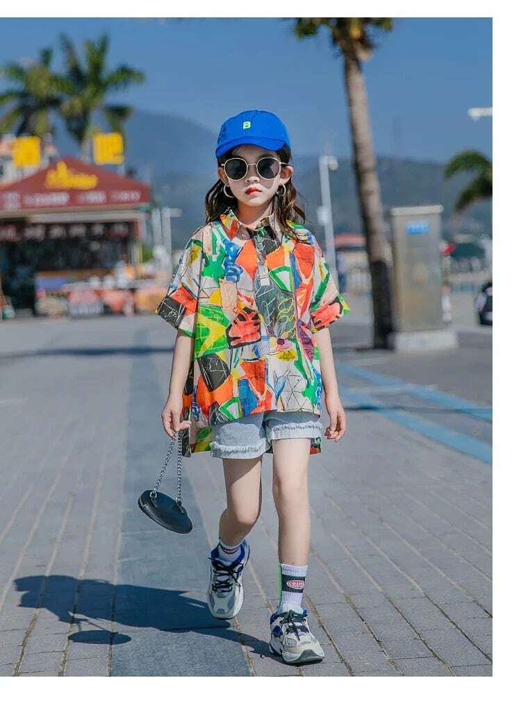 ヒップホップ ダンス衣装 キッズ 半袖 夏 キッズダンス衣装 男の子 女の子 韓国 ハワイ風 シャツ 総柄 花柄 カラフル 110 120 130 140 150 160 170