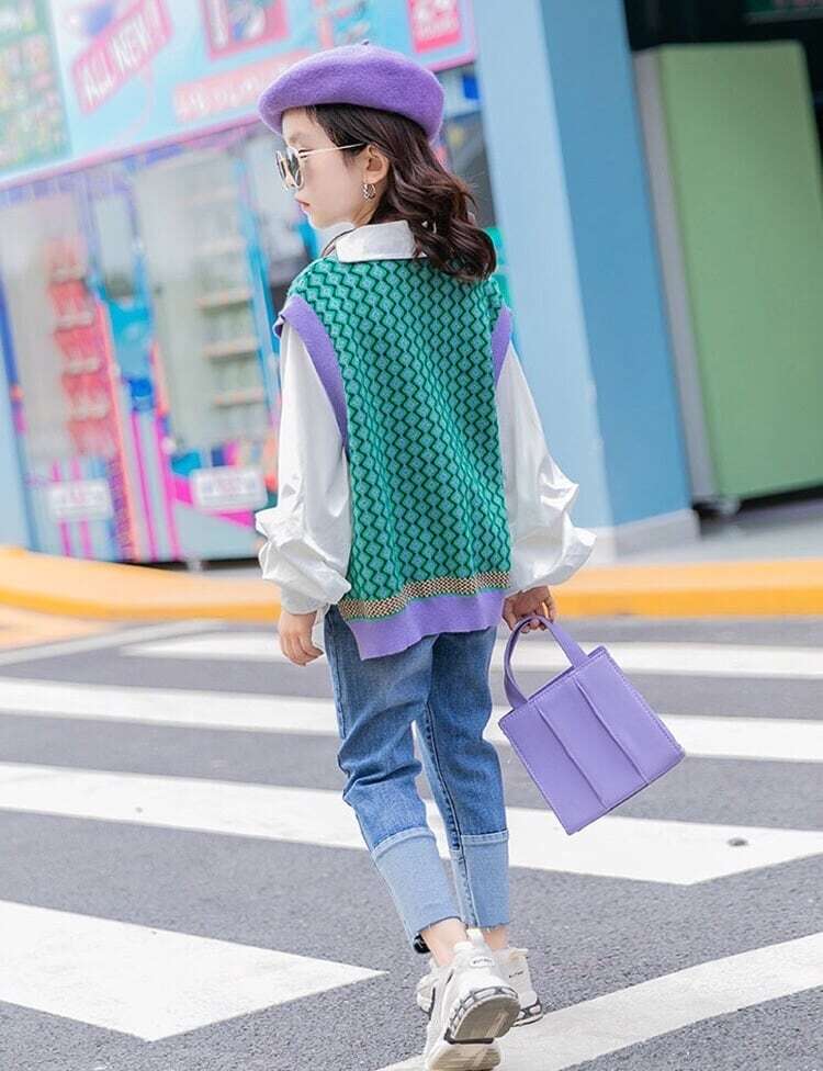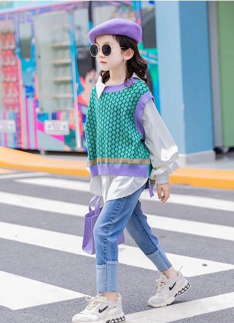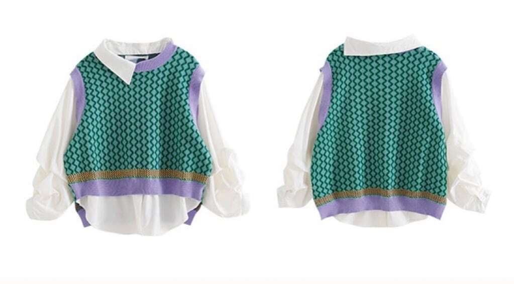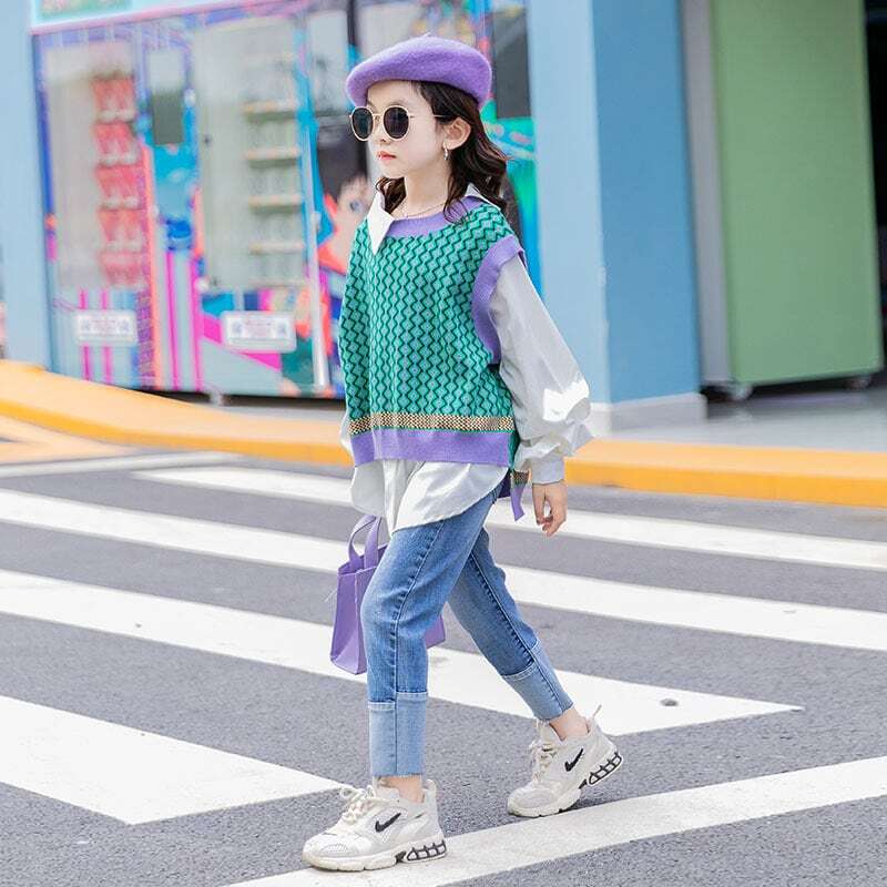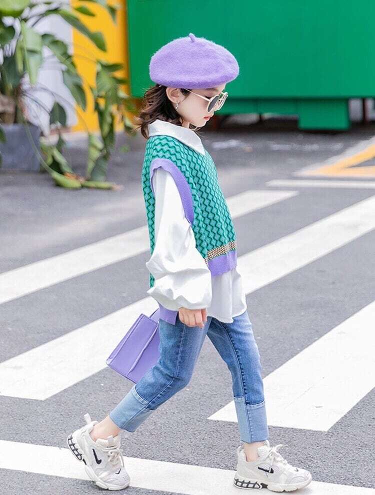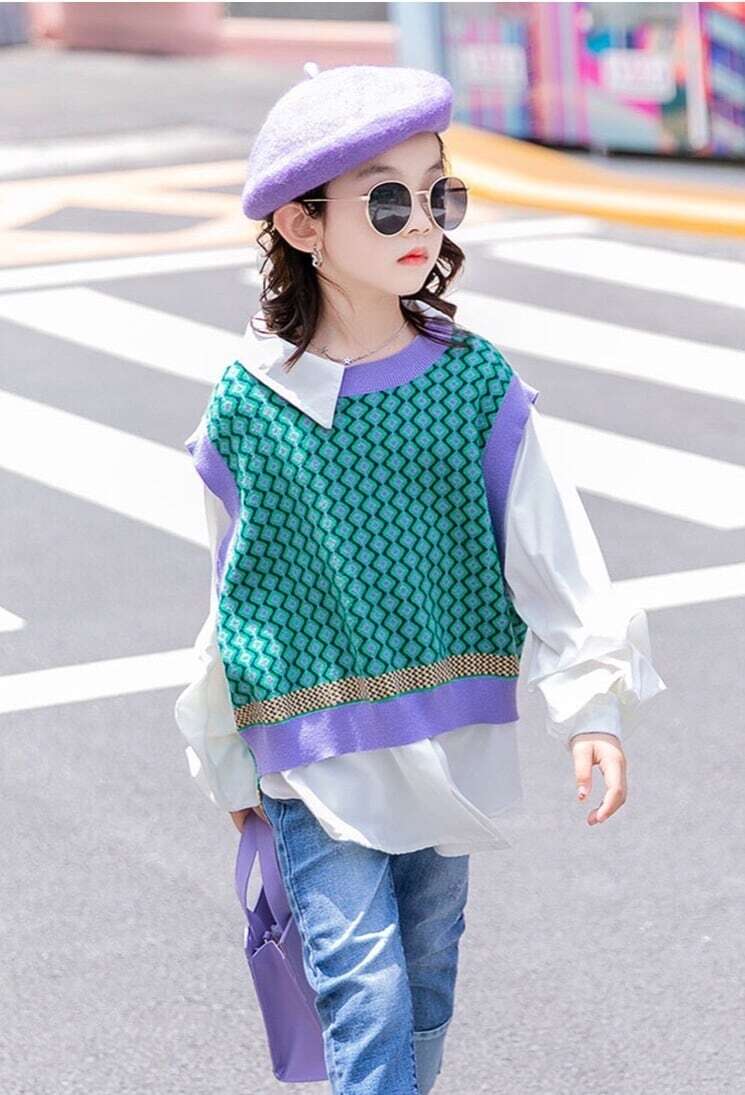 送料無料ニットベスト レイヤードシャツ子供服 子供 服 秋 冬 新作 トップス シフォン シャツ ブラウス モノトーン 長袖 ニットベスト 重ね着風 おしゃれ ママサイズ ルーズ 女の子 キッズ ジュニア ダンス 小学生 ユニセックス 100cm 110cm 120cm 130cm 140cm 150cm 160cm 170cm