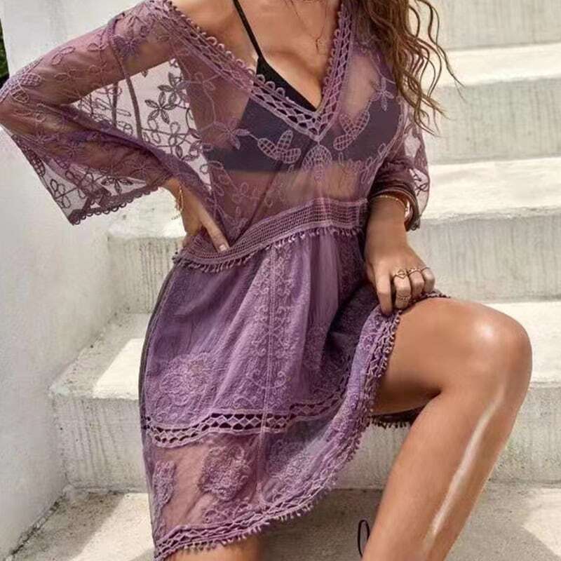 送料無料 刺繍 ブラウス 花柄 マキシワンピース ロングワンピース 花柄 Vネック Aライン フレア 半袖 春夏 リゾート 切り替え 体型カバー ハワイ 沖縄 サマー ビーチワンピース